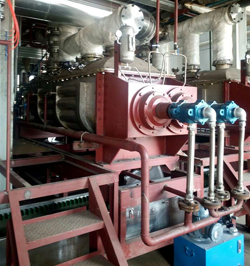 背景 山東xxx公司開發(fā)了利用玉米芯纖維素為原料制備石墨烯材料的創(chuàng)新型生產(chǎn)工藝,但主裝置在工業(yè)化發(fā)大過程中,始終達(dá)不到要求,反應(yīng)干燥過程產(chǎn)品穩(wěn)定性差,報廢率高,無法實現(xiàn)工業(yè)化放大,后由杭州索孚機(jī)械公司參與共同研發(fā)工業(yè)化大裝置-U型臥式雙軸自清潔干燥機(jī),成功的實現(xiàn)了石墨烯工業(yè)化批量生產(chǎn),所生產(chǎn)的石墨烯母??杉徯院?,目前已經(jīng)達(dá)到年產(chǎn)2000噸石墨烯功能聚合物母粒,生產(chǎn)設(shè)備現(xiàn)場情況如下: