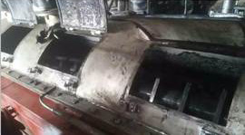 | 舊裝置物料聚團(tuán)抱軸嚴(yán)重混合傳熱死角較多 | 舊裝置物料抱軸情況 |