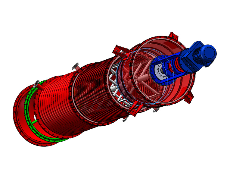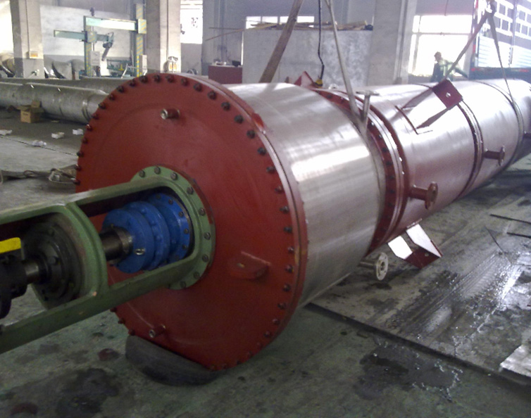 加熱室圓筒體內(nèi)表面,必須經(jīng)過精加工。保證刮板與加熱面之間的小隙在1.5±0.3毫米左右。