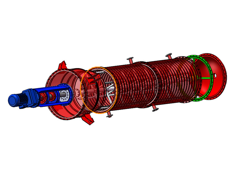 4、改變刮板溝槽旋轉(zhuǎn)方向,可以調(diào)節(jié)物料在蒸發(fā)器的打理時間。