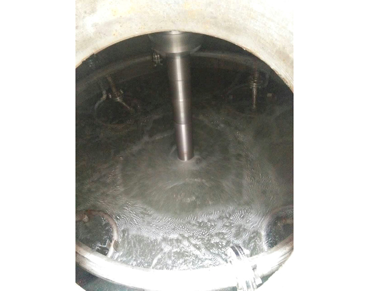 5. 利用下層寬葉仿曲面軸流推進槳大排量的循環(huán),將剛剛噴射出來的氣體,牢牢的壓制在釜體底部,同時也將釜底催化劑固相物料楊起,達到完全懸浮的狀態(tài);