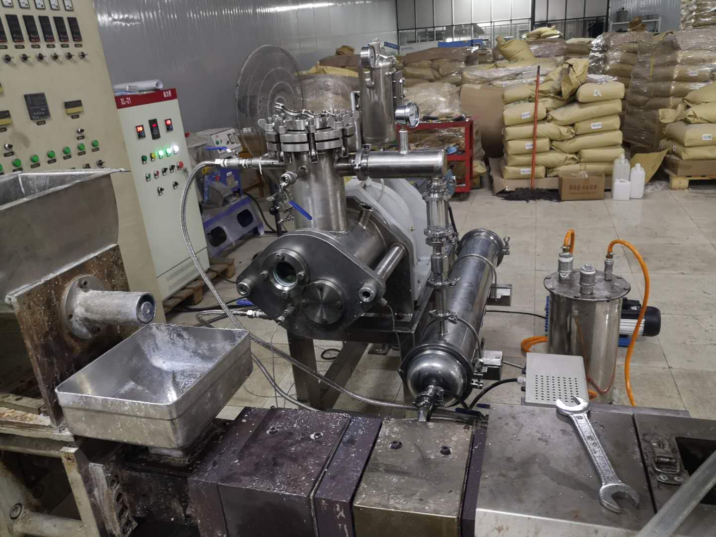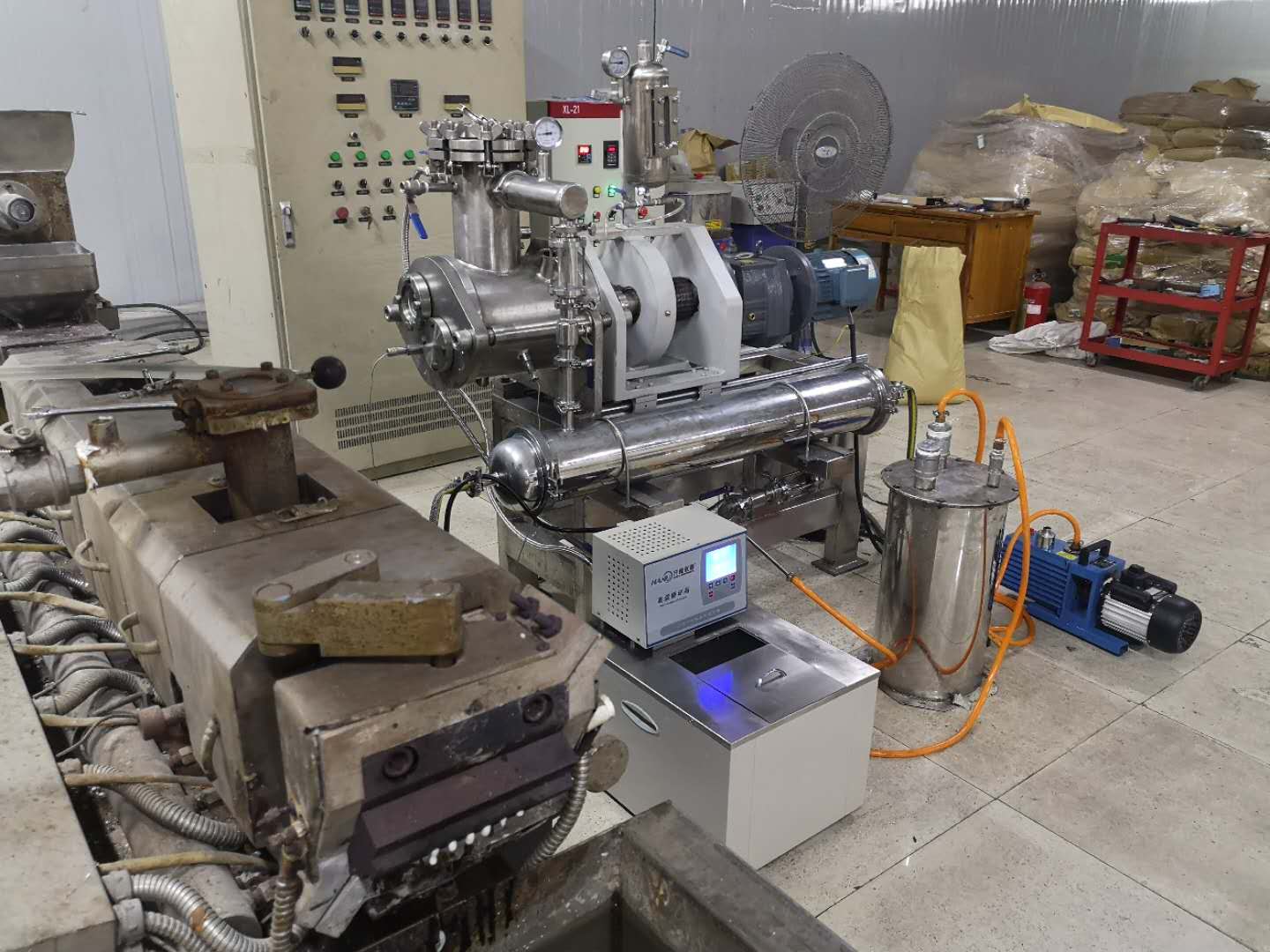 為了適應(yīng)在真空狀態(tài)下的操作,專門安裝了適用于高粘度物料的齒輪泵式出料器。該出料器直接安裝在主設(shè)備上,消除了設(shè)備內(nèi)的死角。齒輪泵式出料器在稍微超負(fù)荷的條件下工作,以保證物料能連續(xù)地排出,并輸入下一工段進(jìn)行包裝。
