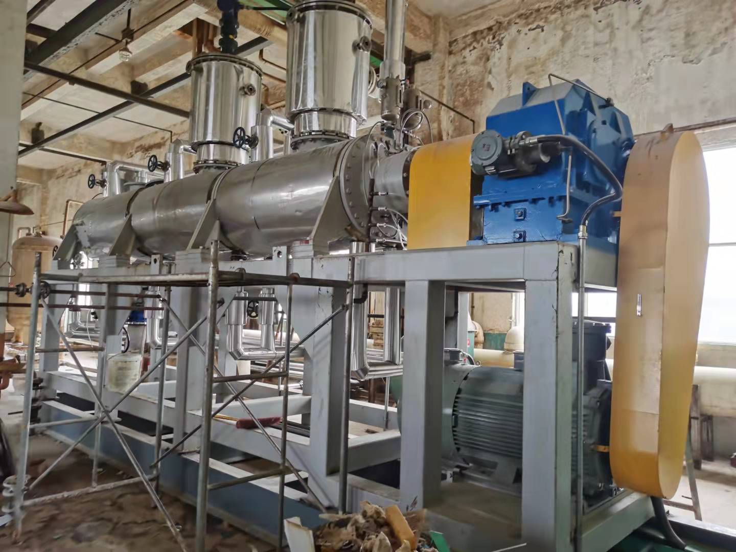 為了適應(yīng)在真空狀態(tài)下的操作,專門安裝了適用于高粘度物料的齒輪泵式出料器。該出料器直接安裝在主設(shè)備上,消除了設(shè)備內(nèi)的死角。齒輪泵式出料器在稍微超負(fù)荷的條件下工作,以保證物料能連續(xù)地排出,并輸入下一工段進(jìn)行包裝。