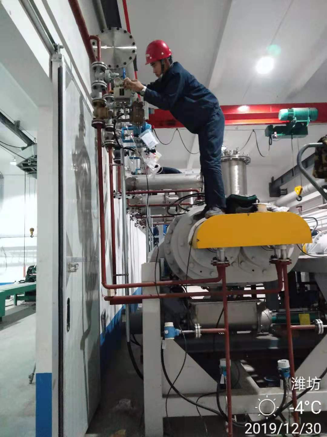 為了適應在真空狀態(tài)下的操作,專門安裝了適用于高粘度物料的齒輪泵式出料器。該出料器直接安裝在主設備上,消除了設備內的死角。齒輪泵式出料器在稍微超負荷的條件下工作,以保證物料能連續(xù)地排出,并輸入下一工段進行包裝。